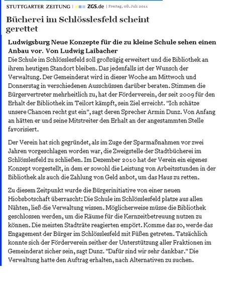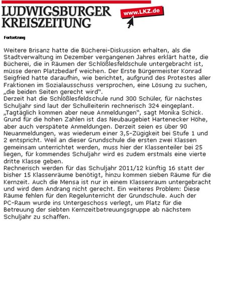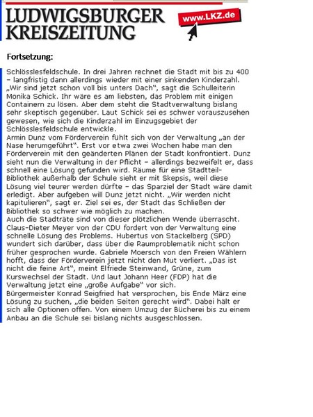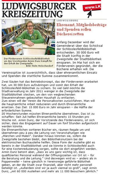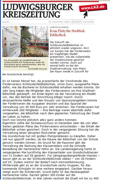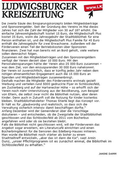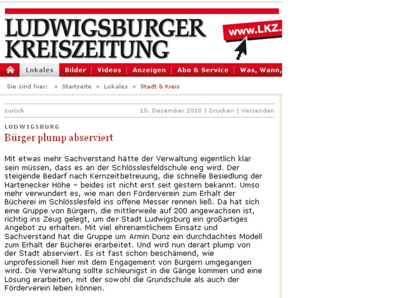 "Förderverein plump von der Stadt abserviert." (10.12.2010)