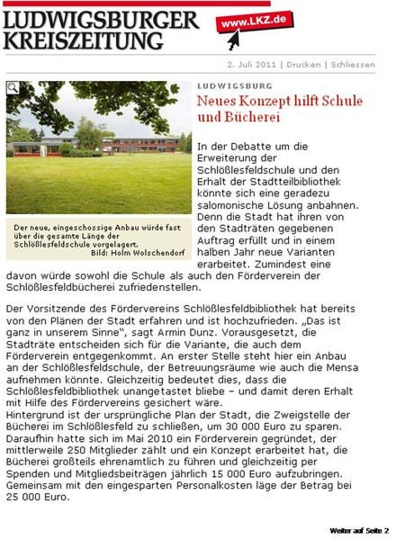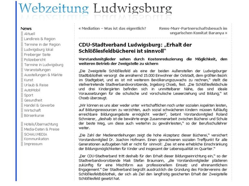„Erhalt der Schlößlesfeldbücherei ist sinnvoll".