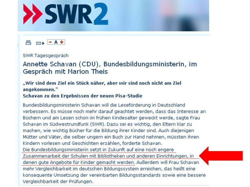 Schavan setzt auf engere Zusammenarbeit der Schulen mit Bibliotheken.