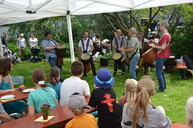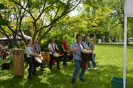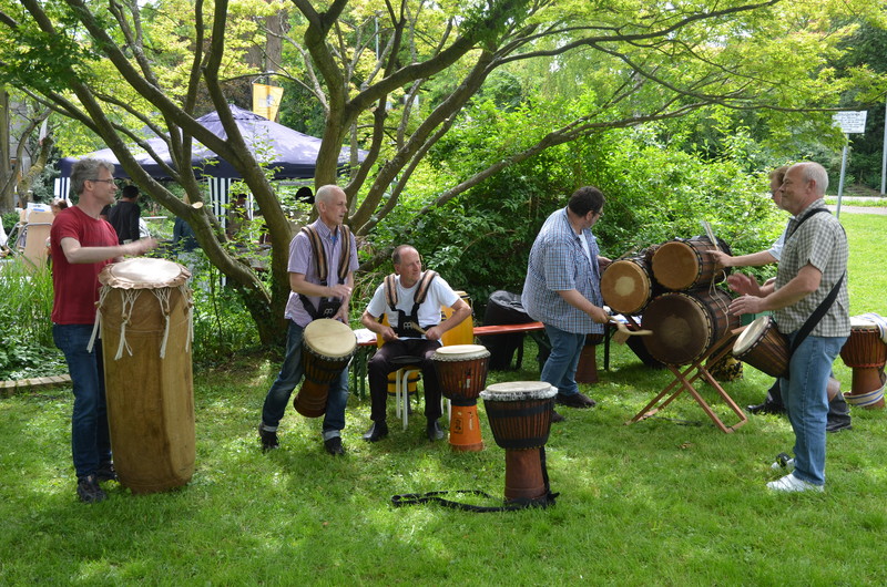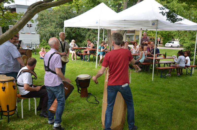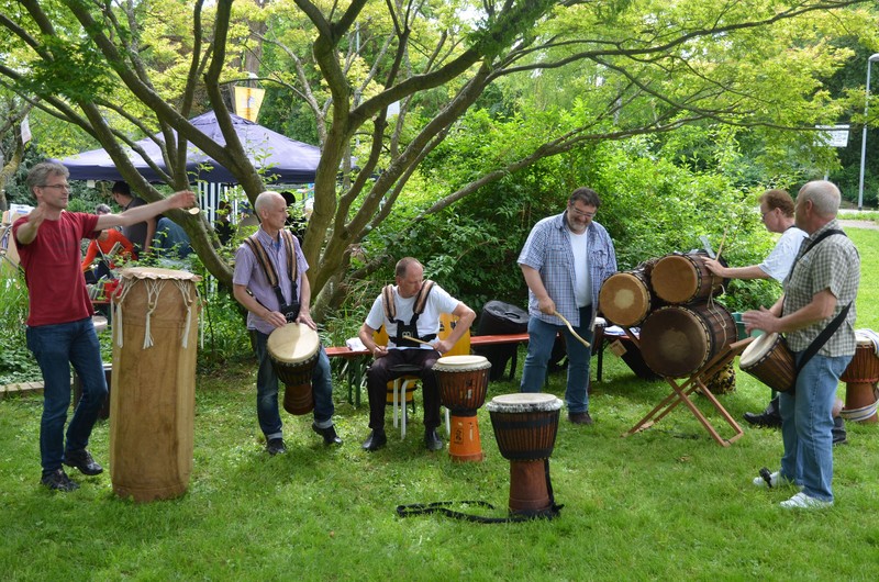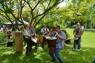 Die trommelige fetzige Begrüßung durch die Ziegenklopfer. Natürlich!