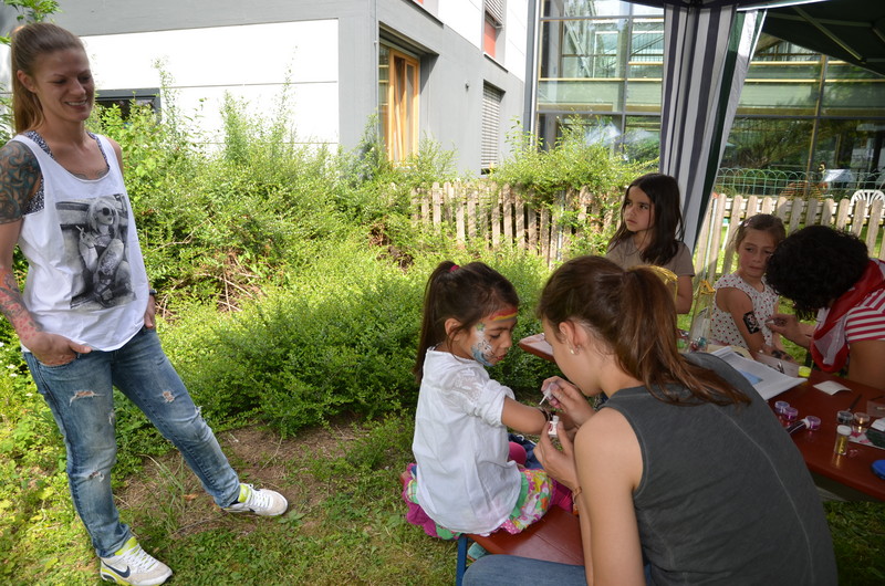 Voller Einsatz beim Kinderprogramm. Glitzer-Tattoos, Kinderschminken. Und laaaaaange Schlangen :-).