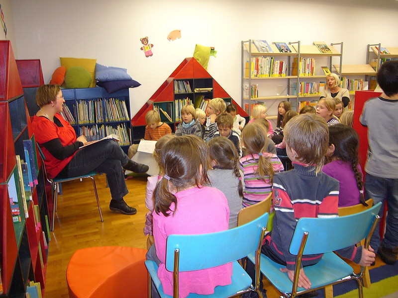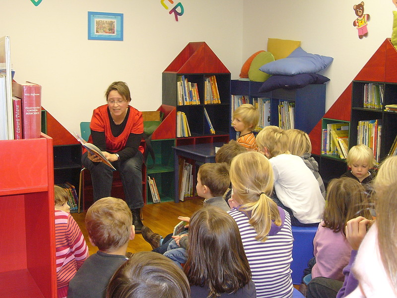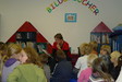 Gespannt lauschen die kleinen Besucher der Schlößlesfeldbibliothek der Autorin Alexandra Streit, die ihr neues Buch "Leo sucht das Weihnachtswunder" vorstellt.