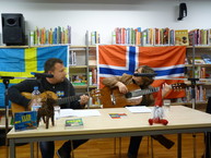 In friedlichem Mit- und Gegeneinander lasen sie aus ihren Büchern "Dösende Möwen" und "Elchscheiße", plauderten über Abgründe der Recherche und richteten dabei allerhand auf zwei Gitarren an - zwischen Flamenco und SchwedenMetal...