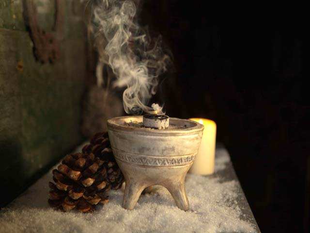 Räucherns als Vorbereitung auf die Wintersonnenwende am