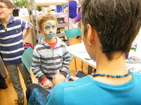 Und dann startet ein weiteres Highlight für die Kinder an diesem Nachmittag: Manuela Szymczak erfüllt alle Träume: ob Zöpfchenflechten oder Schminken oder stylische Tattoos - hier werden alle Kinder glücklich...
