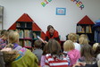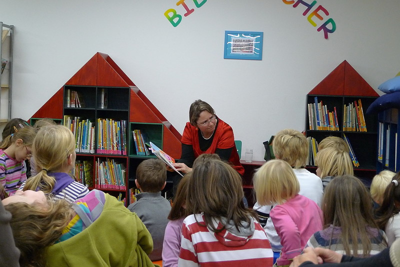 Gespannt lauschen die kleinen Besucher der Schlößlesfeldbibliothek der Autorin Alexandra Streit, die ihr neues Buch "Leo sucht das Weihnachtswunder" vorstellt.