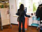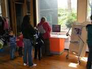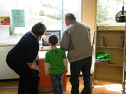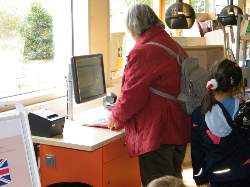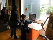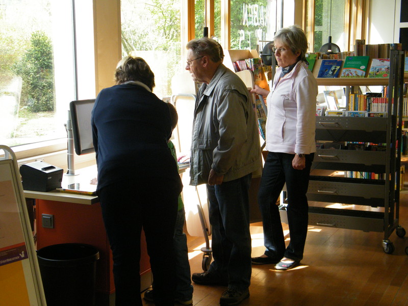 Ehrenamtliche Helfer des Fördervereins unterstützen an den Terminals zur automatischen Ausleihe und Buchrückgabe: